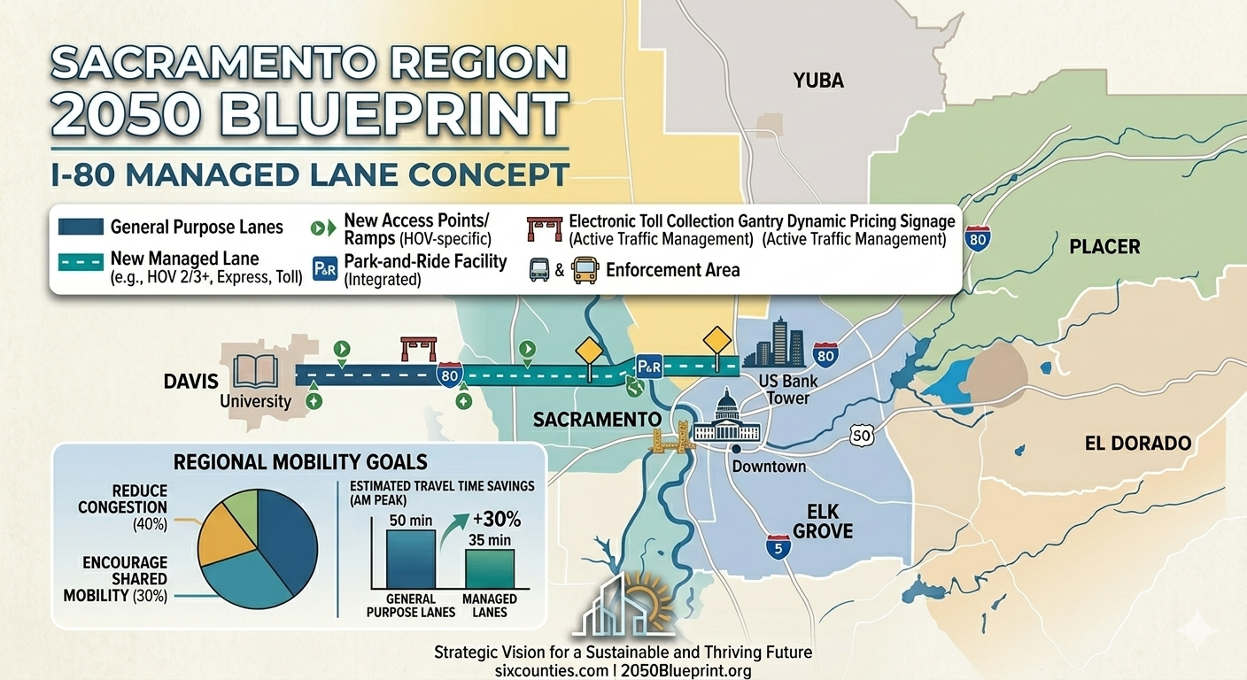 The I-80 Managed Lane Project between Sacramento and Davis began construction in 2025 and is expected to be completed around 2027.
